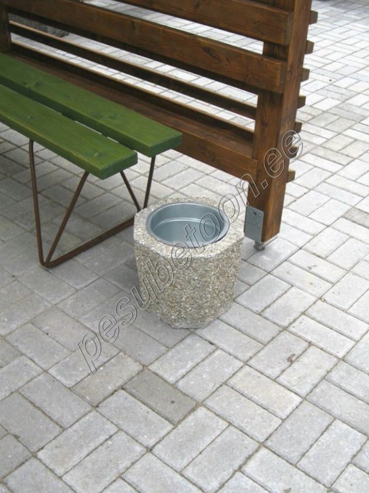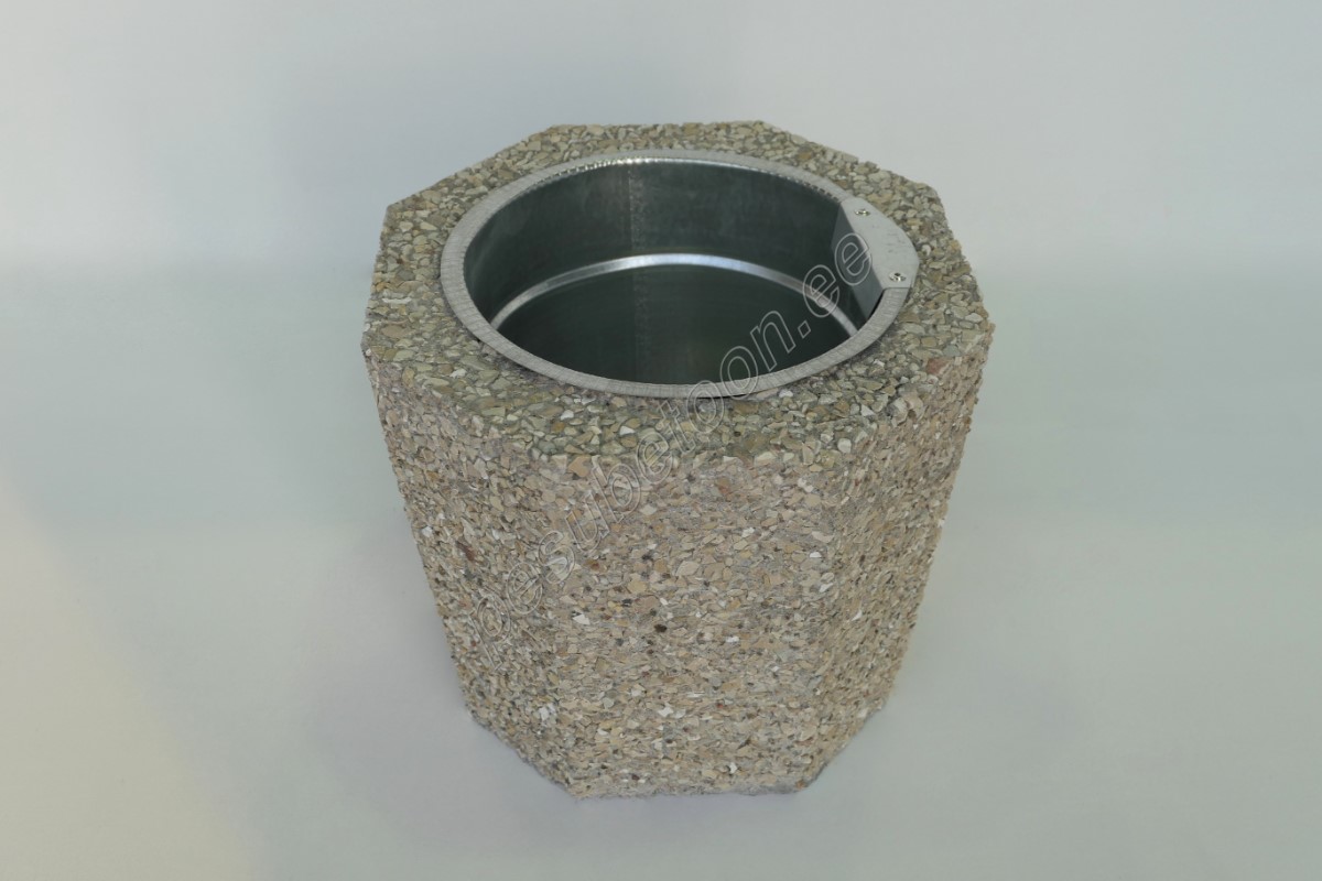 Tugev, raske, ilmastiku- ja tulekindel heledast pesubetoonist prügiurn, mis sobib suurepäraselt trepikoja või ärihoone ette.