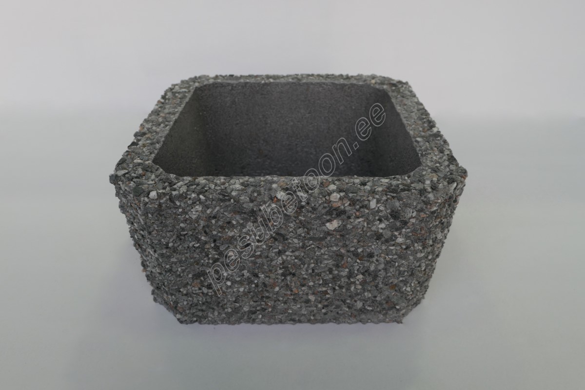 Tugev ja ilmastikukindel tumedast pesubetoonist vaas, mis sobib suurepäraselt aeda, kodutrepile, parki või kalmistule.