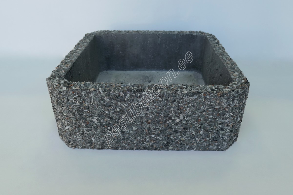 Tugev ja ilmastikukindel tumedast pesubetoonist vaas, mis sobib suurepäraselt aeda, kodutrepile, parki või kalmistule.